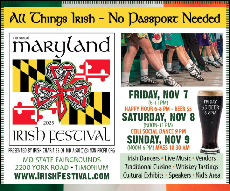 Nov 7 Featured 6:00 pm Maryland Irish Festival Maryland State Fairgrounds 2200 York Rd, Timonium Event Details Get Directions