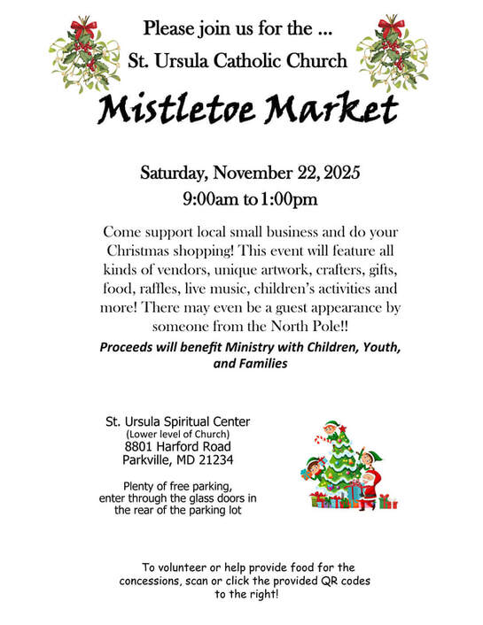 Nov 22 9:00 am Mistletoe Market St Ursula Church 8801 Harford Rd, Parkville Event Details Get Directions
